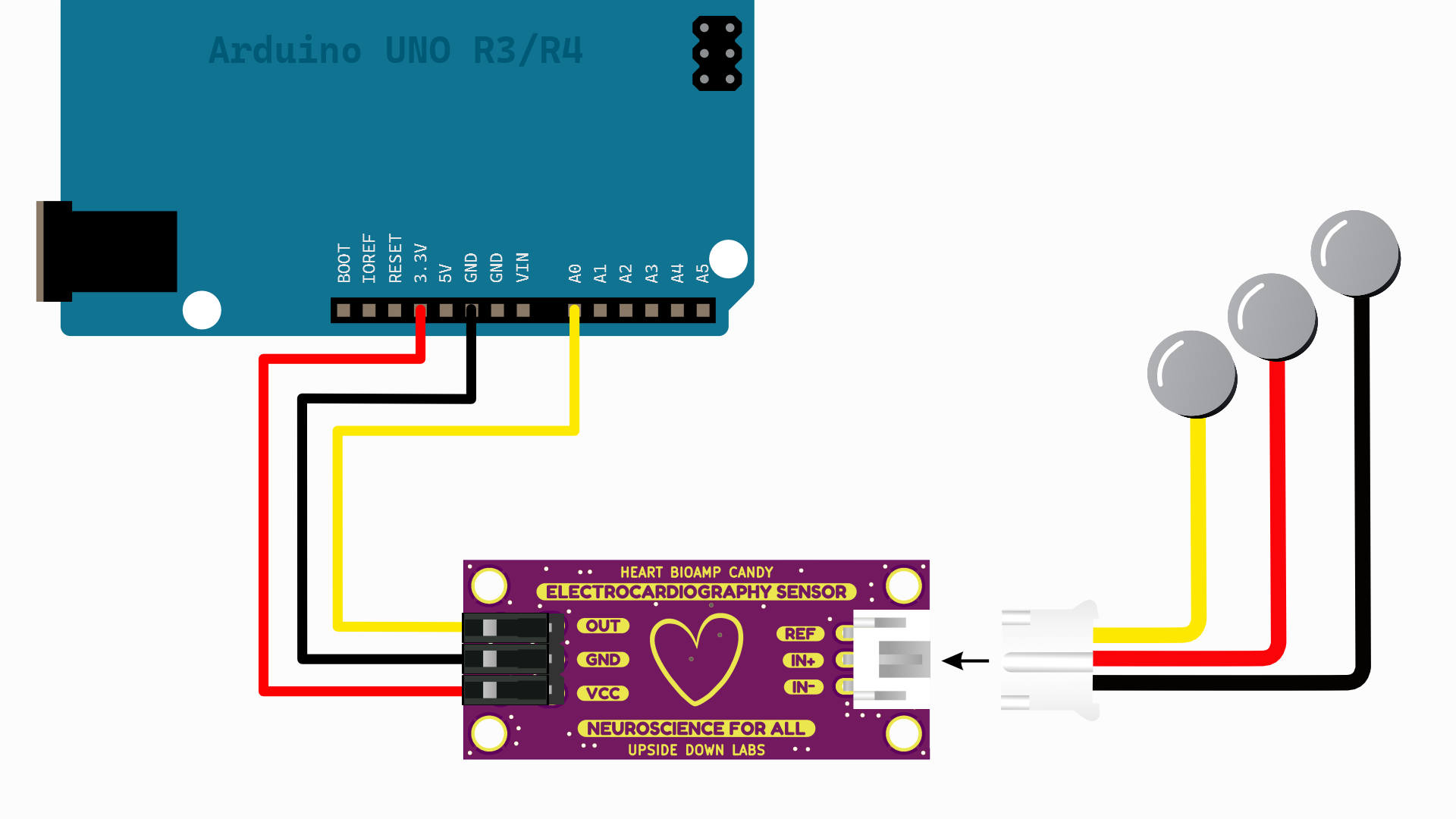 Heart BioAmp Candy - Koneksi kabel elektroda#